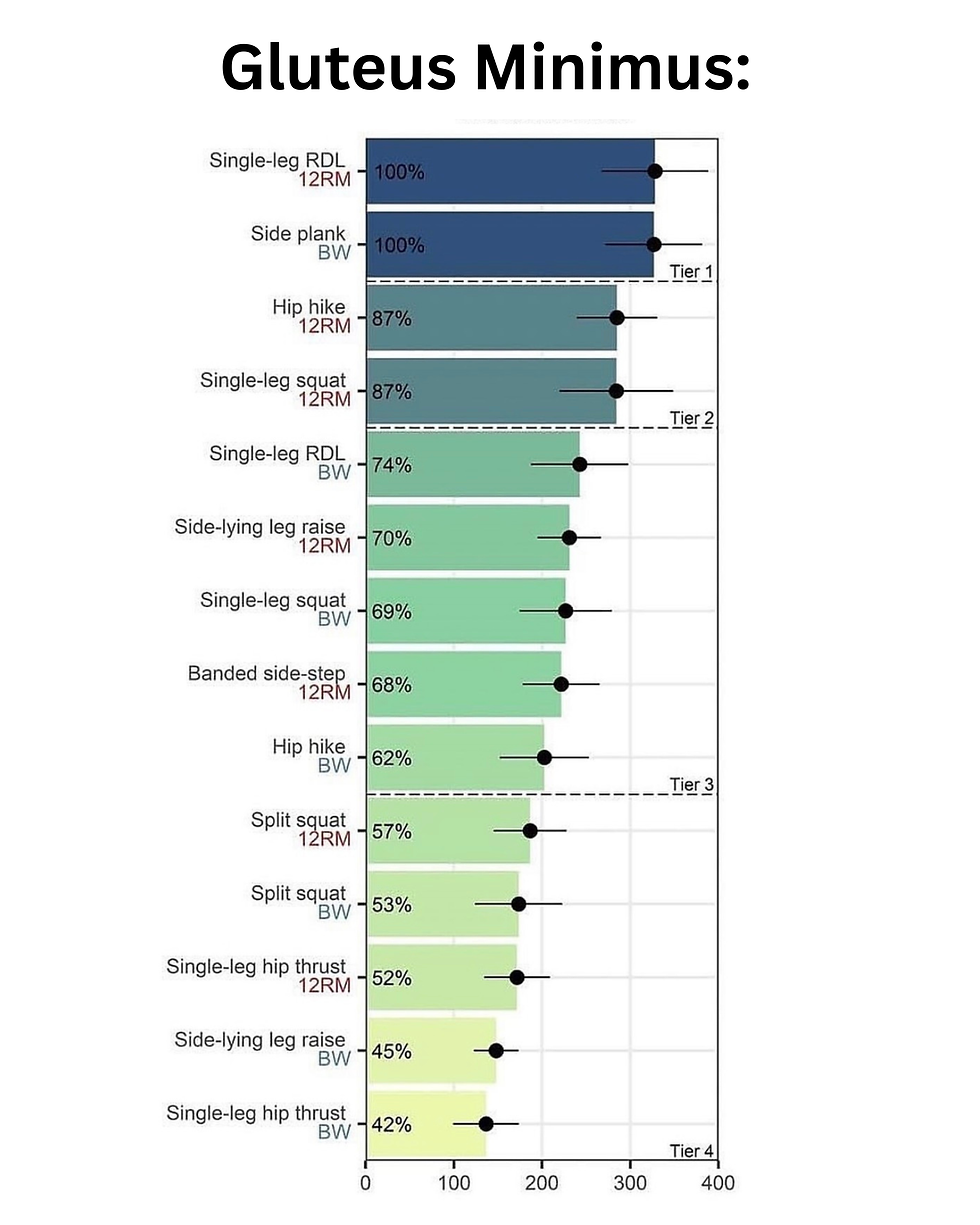 Note - The single leg RDL, the single leg squat and the side plank ranked highly across all three gluteal regions studied.